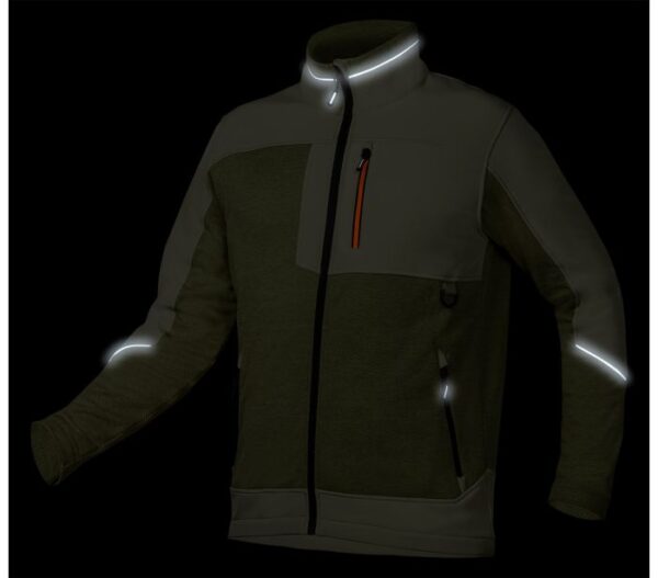 Bluza softshell OUTDOOR, zielona, rozmiar L, 81-517-L NEO TOOLS to bluza o unikalnym splocie ,,rybiej łuski”, uzupełniona o funkcjonalne wstawki z dzianiny softshell. Wykonana w 100% z poliestru o gramaturze 265g/m2, jest synonimem trwałości oraz komfortu użytkowania. Kolor oliwkowo-zielony nadaje jej uniwersalnego, profesjonalnego wyglądu oraz pasuje do różnorodnych środowisk pracy.