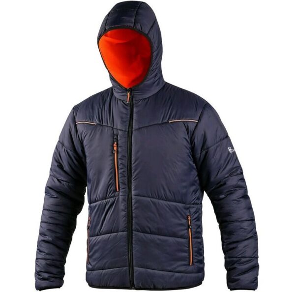 Męska obustronna kurtka ostrzegawcza ocieplana. Kaptur nieodpinany, mankiet rękawu i dolny brzeg w gumkę. Zewnętrzna część: kieszenie na piersi na zamek, boczne kieszenie na zamek i segmentowe paski odblaskowe. Wewnętrzna część: kieszeń na piersi na zamek, boczne kieszenie na zamek, kontrastujące żółte/pomarańczowe i odblaskowe elementy. Zalecane zastosowanie: budownictwo, prace drogowe, kierowcy, transport lotniczy i morski, logistyka, kierowcy ciężarówek, policja.