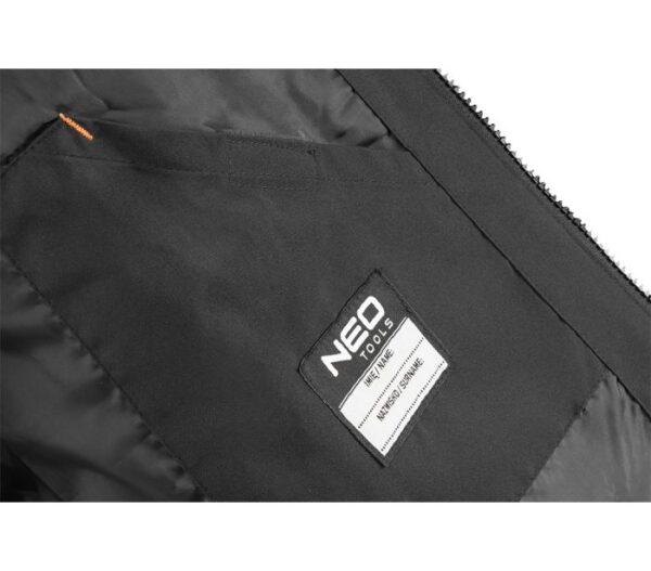 Kurtka robocza Warm NEO TOOLS to niezawodny element garderoby, przeznaczony na zimę, oferujący doskonałą ochronę przed mrozem oraz komfort na wiele godzin noszenia. Kurtka wykonana z wysokiej jakości materiałów, takich jak: tkanina zewnętrzna 100% poliestru, podszewka 100% poliestru oraz wypełnienie również w pełni poliestrowe gwarantujące nie tylko ciepło, ale także trwałość.