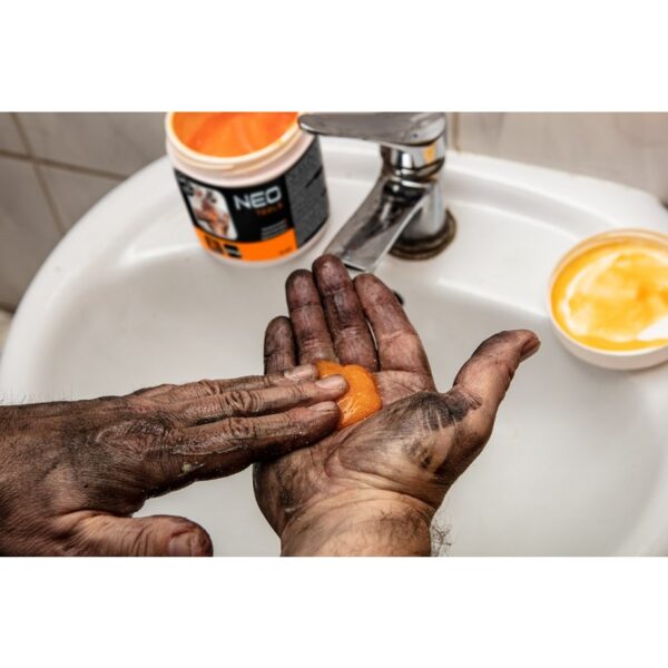 Żelowa, pomarańczowa, pasta do mycia rąk, do usuwania trudnych zabrudzeń – słoik 500g NEO (nr ref. 10-401) poradzi sobie z zabrudzeniami, którym nie da rady mydło. Przeznaczona dla fachowców pracujących w budownictwie, motoryzacji, poligrafii, lakiernictwie.