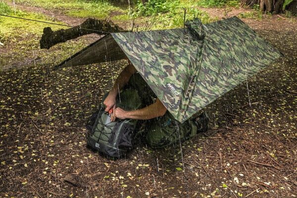 Peleryna przeciwdeszczowa NEO (nr ref. 63-132) w kolorze camo to funkcjonalny produkt 3 w 1 zapewniający ochronę w trudnych warunkach atmosferycznych oraz dający możliwość użycia jako matę lub prowizoryczny namiot bądź tarp. Wykonany z poliestru 210D.
