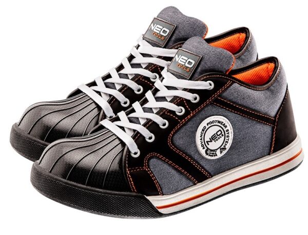 Półbuty robocze NEO to podstawowa ochrona podczas pracy. Cholewka wykonana z przewiewnego materiału. Antypoślizgowa podeszwa wykonana z pianki EVA pokrytej gumą zapewnia wysoki komfort i skuteczne amortyzowanie wstrząsów, gwarantuje bezpieczeństwo i wygodę. Tył buta wzmocniony tworzywem oraz metalowy nosek chronią przed urazami mechanicznymi. Dzięki miękkiemu wykończeniu wewnątrz buta komfort pracy pozostaje na wysokim poziomie. Oznaczenie CE to gwarancja bezpieczeństwa, dowodzi, że produkt spełnia wszystkie unijne wymagania. Marka NEO spełnia oczekiwania profesjonalistów.