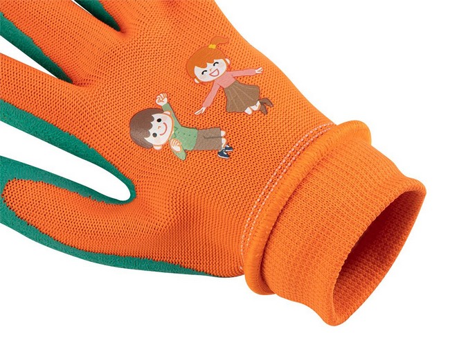 Rękawice robocze dla dzieci, poliester pokryty lateksem (crincle), rozmiar 3, 97-644-3 marki NEO wykonane zostały z poliestru z dodatkowym pokryciem lateksem (crincle), wpływającym na lepszy chwyt oraz zabezpieczającym przed szybkim zużyciem. Rękawice należą do kategorii I. Oddychająca zewnętrzna tkanina wpływa na komfort użytkowania. Rękawice dziecięce zakończone są praktycznym ściągaczem, który zapobiega przedostawaniu się brudu do środka. Kolorowy nadruk z podskakującymi z radości dziećmi z pewnością przypadnie do gustu małym miłośnikom ogrodnictwa oraz majsterkowania. Rękawice robocze marki NEO posiadają zgodność z certyfikatem CE.