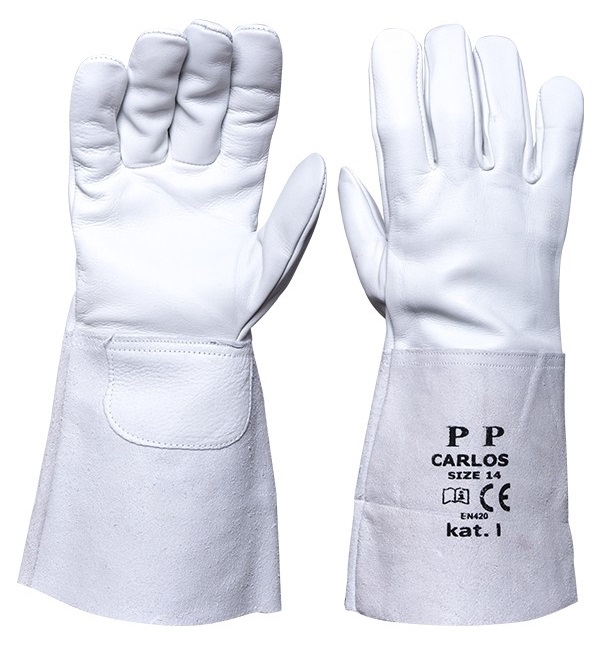 rękawice robocze, ochronne, wykonane w części chwytnej i zewnętrznej ze skóry koziej, licowej.