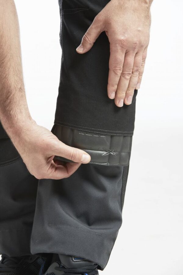 Dwie dwuwarstwowe kieszenie na nakolanniki umożliwiające ich wkładanie na 2 sposoby