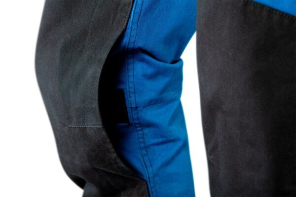 Elastyczne elementy umieszczone w pasie pozwalają na lepsze dopasowanie rozmiaru. Potrójne szwy wewnętrzne zwiększają odporność na rozerwania. Spodnie wyróżnia odważne połączenie kolorów, a nowoczesny miejski któj pozwala na użytkowanie produktu również poza pracą.