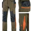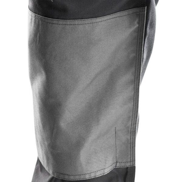 Potrójnie przeszyte szwy, zwiększające trwałość łączenia oraz opcję włożenia nakolanników, co znacznie podnosi komfort pracy.